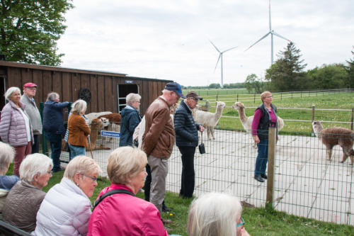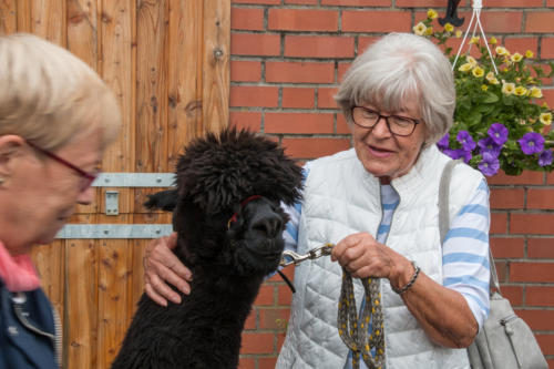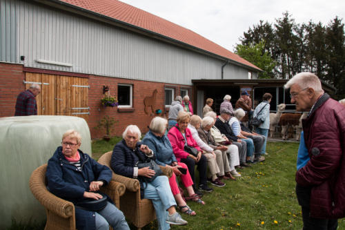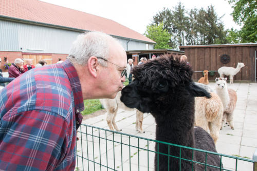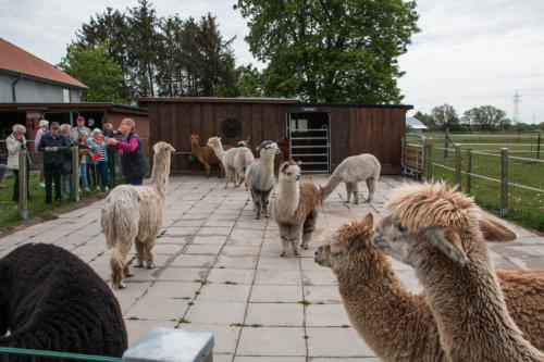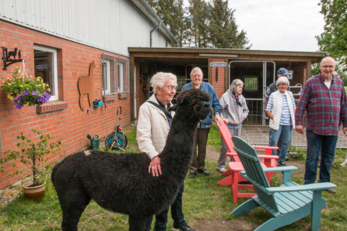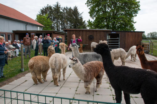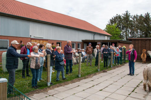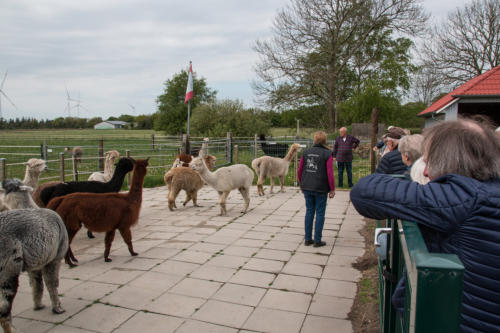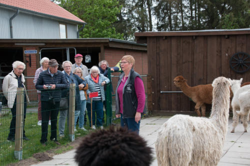 Besichtigung und Vortrag Alpakahof Qorikancha am 17.05.2022Am 17. Mai 2022 machten sich 36 Teilnehmer auf den Weg nach Knorburg, einem Ortsteil von Enge-Sande, um den dortigen Alpakahof von Sabine Gaack zu besichtigen.Das Ehepaar Gaack empfing uns gegen 15:00 Uhr und wie fast immer, wenn die Senioren Union unterwegs ist, war das Wetter in Nordfriesland wieder gut. Die besonderen Tiere aus dem Andenstaat Peru standen schon erwartungsvoll im sogenannten „Showroom“. Für unsere nicht ganz so mobilen Teilnehmer standen Sitzmöglichkeiten zur Verfügung, so dass der Vortrag beginnen konnte. Sabine Gaack erläuterte ausführlich die einzelnen Rassen der Alpakas, ihre Herkunft und dass die Tiere in ihrem Heimatland unverzichtbare Arbeitsleistungen erbringen. Vom Wert ihrer einzigartigen Wolle ganz zu schweigen. In unseren Breiten werden die Tiere eingesetzt in der Seniorenarbeit und bei der Betreuung von kranken und behinderten Menschen. Insgesamt sind auf dem Hof 11 Stuten und 5 Hengste.Nach dem sehr ausführlichen Vortrag und der darauffolgenden näheren Begegnung mit der Alpakadame „Loretta“, bei welcher alle einmal das super weiche Fell der Tiere erfahren durften ging es dann zu einem kleinen Überraschungsimbiss in Bergers Restaurant nach Enge.Diese Begegnung mit den Tieren aus Südamerika war schon ein besonderes Ereignis für die Teilnehmer, die einen großen Informationsschatz mit nach Hause nehmen konnten. Ein schöner Nachmittag für die Senioren Union Niebüll und Umgebung.Nachfolgend Fotostrecke dieser Besichtigungs- und Vortragsfahrt nach Knorburg zum Alpakahof Qorikancha