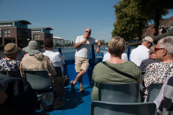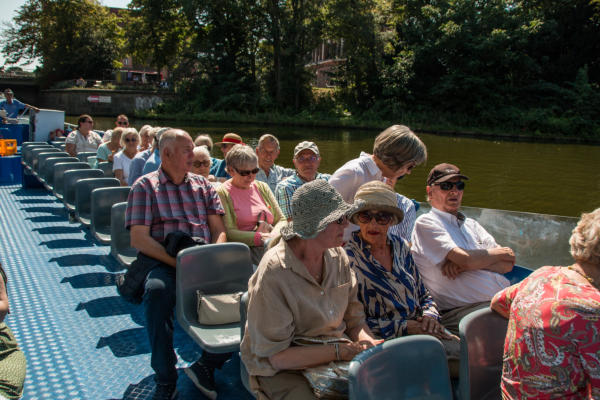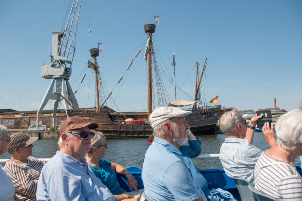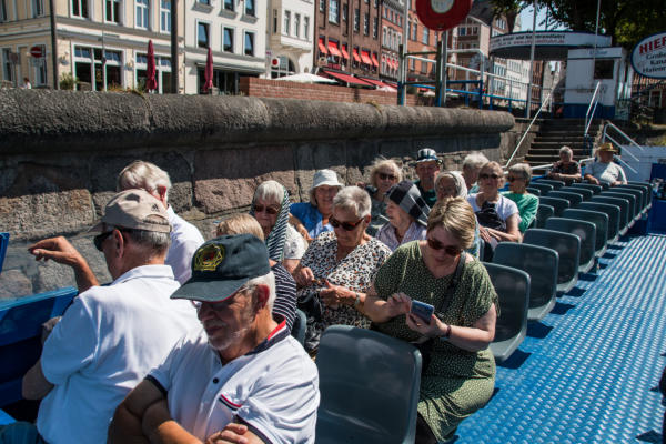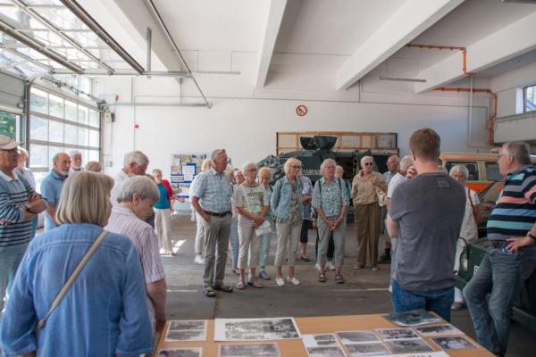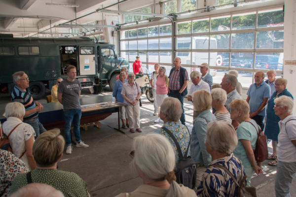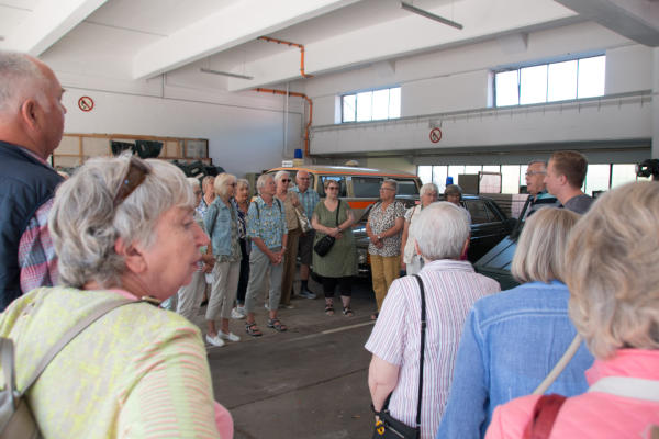 Tagesfahrt zum BGS-Museum und Travefahrt in Lübeck am 13.08.2024Um 08:30 Uhr machten sich 38 Teilnehmer auf die Tagesfahrt zum Museum der Bundespolizeiakademie in Lübeck. Das Museum ist seit 2011 für den Publikumsverkehr geöffnet. Die Hinfahrt dauerte etwas länger, als geplant, was aber der Stimmung der Teilnehmer keinen Abbruch tat. Bei bestem Wetter (heißester Tag des Jahres mit bis zu 35°C) und einem stetigen Wind war es sehr gut auszuhalten. Vor Ort wurden wir von Gerd Wagner von der Museumsleitung empfangen und zum Museum geführt. Dort wurden wir detailliert in die Entwicklung des Bundesgrenzschutzes und dessen Aufgaben informiert. Die geschichtliche Sammlung des BGS wurde 2001 begonnen und im Jahre 2011 wurde das Museum eröffnet. Die ausgestellten Fahrzeuge und Geräte wurden erläutert und auch Bildgalerien und Beschreibungen konnten eingesehen werden. In Anbetracht der relativ kurzen Zeit konnten wir allerdings nicht den kompletten Umfang der Ausstellung besichtigen. Gegen 13:00 Uhr wurden wir zum Mittagessen in der örtlichen Kantine erwartet. Dort gab es ein schmackhaftes und reichhaltiges Mittagessen mit einem leckeren Nachtisch. Von dort ging es dann in die Lübecker Innenstadt zu einer Schifffahrt auf der Trave. Wir kamen pünktlich an der Stadttrave an und mußten noch ein wenig warten, bis das Schiff uns aufnehmen konnte. Die Sonne schien aus einem wolkenlosen Himmel und es war Zeit, eine Kopfbedeckung aufzusetzen, da das Boot keine Überdachung hatte. Durch den stetigen leichten Wind war aber die Hitze des Tages gut zu ertragen. Mit dem Schiff der City Schifffahrt ging dann die Tour gegen 14:30 Uhr los. Vorbei an Oldtimer-Seglern und rund um die Lübecker Altstadtinsel. Durch idyllische Wasserarme war diese Fahrt ein wunderschönes Erlebnis. Gegen 17:00 Uhr machten wir uns auf die Heimfahrt und kamen gegen 20:15 Uhr sicher, aber auch müde mit dem Reisebus von Thors Reisen in Niebüll an.Vielen Dank an die Ideengeber und Organisatoren Christel Ehlers und Harald Fehring.Abschließend einige Fotos dieses Ausflugs