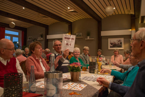 Bingonachmittag am 16.01.2025Am 16.01.2025 erlebten 55 Mitglieder und Gäste einen unterhaltsamen Spielenachmittag mit Kaffee und Kuchen im Restaurant Friesenhof in Niebüll. Die Organisatoren Christel Ehlers und Eckhard Paul hatten dieses Bingoverspielen vorbereitet, sodass es nach dem unterhaltsamen Kaffeetrinken dann auch losgehen konnte. Gespielt wurden 3x 1 Reihe und im Hauptgang 1x Volle Karte. Der Hauptpreis war ein Gutschein über 50,-€ für eine der nächsten Fahrten, welche der Ortsverband durchführen wird. Auch ein Präsentkorb, gestiftet von Edeka Lück, wurde im Hauptgang ausgespielt. Nachdem der Preise-Tisch abgeräumt war und viele Gewinner ermittelt wurden, ging dieser Nachmittag gegen 17:30 Uhr seinem Ende entgegen. Es war wieder einmal ein gelungener Nachmittag in Gemeinschaft der Senioren Union Niebüll und Umgebung.Nachstehend einige Impressionen von dieser Veranstaltung der Senioren Union Niebüll und Umgebung