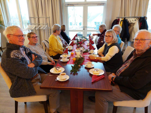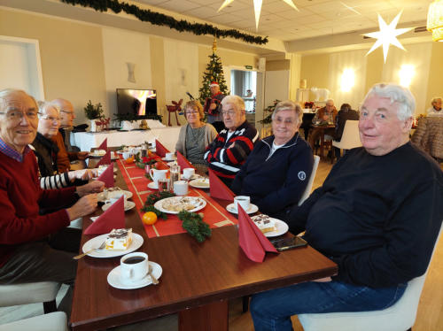Kaffeetrinken, leckere Torte, Stollen und Streuselkuchen wurden angeboten.