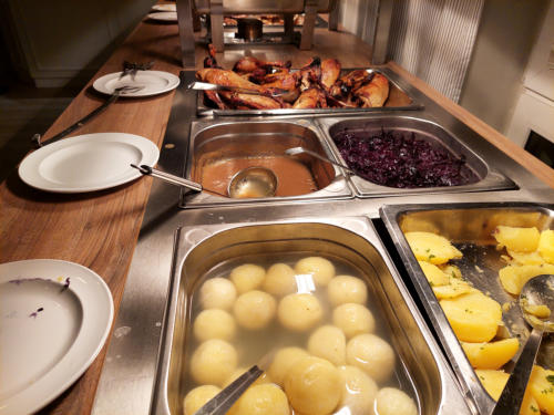 gemeinsame Essen. Es wurde am Buffet leckerer Entenbraten mit Rotkohl,