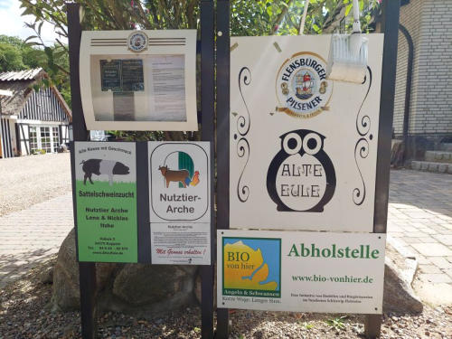 Angler-Sattelschweine. Einige Bio- Produkte aus eigener Herstellung