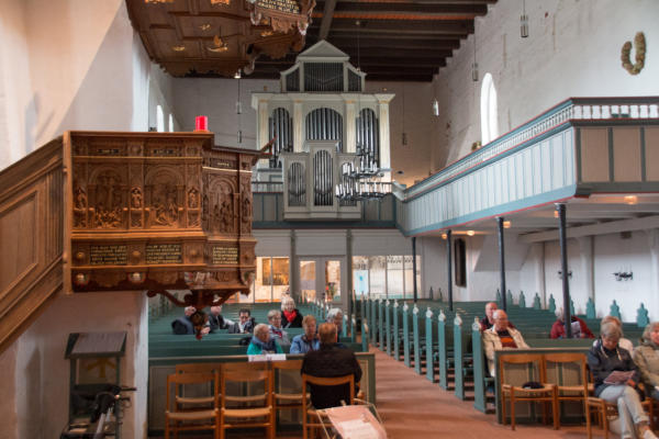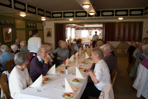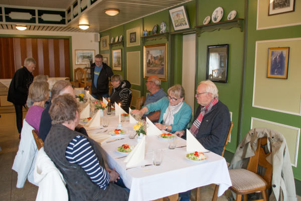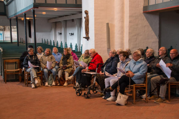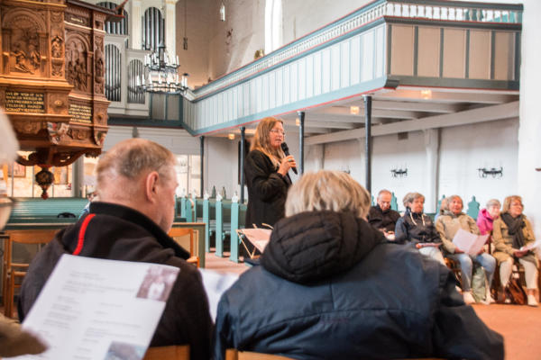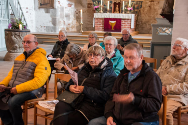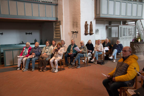 Tagesausflug nach Föhr am 21.05.202542 Teilnehmer trafen sich am 21.05.2025 zur Abfahrt um 08.45 Uhr am ZOB Niebüll. Im Reisebus der Firma King ging es dann Richtung Dagebüll zur Fähre nach Wyk auf Föhr. Seniorengerecht ging es mit dem Bus auf die Fähre, wir standen direkt am Bug der Fähre. Die Überfahrt dauerte ca. 40 Minuten und die Insel Föhr begrüßte uns mit den ersten Sonnenstrahlen dieses Tages. Am Hafen wartete „Onkel Wolfgang“ als Reiseführer. Busfahrer war heute der Chef John King persönlich, der ein echter Insulaner ist. Onkel Wolfgang moderierte sachkundig unsere Fahrt über die Insel zu den verschiedensten Orten und Ecken. Die Geschichte der Kaufleute und Handwerker erklärte er uns sehr interessant und umfangreich. Der gereichte kleine Piccolo kam bei den Teilnehmern wieder gut an. Gegen 12:00 Uhr erreichten wir das Restaurant. Der Midlumer Krog empfing uns mit schön eingedeckten Tischen und einem frischen Salatteller. Da schon einige Zeit seit dem Start der Reise vergangen war, hatten alle einen ordentlichen Appetit und wir ließen uns das Essen schmecken. Es gab wahlweise ein Fisch- oder Fleischgericht. Der anschließende Nachtisch mit Eis und Heiss war der krönende Abschluß des Mittagessens.Anschließend wurde die Rundfahrt über die Insel fortgeführt. Die teilweise schmalen Straßen und Wege meisterte John King bravourös, er fuhr so sicher und souverän die schmalsten Wege.Gegen 15:00 Uhr steuerten wir die Kirche St. Johannis in Nieblum an. Dort erwartete uns die Organistin und Kirchenmusikerin Birgit Wildeman zu einem Konzert mit Vortrag in der Kirche. In 90 Minuten wurden uns sehr viele Informationen über Föhr, die Walfänger und Auswanderer, sowie die großen Aufgaben der Frauen, die allein über die lange Zeit der Ausfahrten der Walfänger für das Wohl der Kinder sorgen mußten, übermittelt. Untermalt von wunderbarer Orgelmusik aus den unterschiedlichsten Epochen der Geschichte bis in unsere Zeit. Und dieses alles in der einzigartigen Atmosphäre im „Friesendom“, der Kirche St. Johannis in Nieblum.Vielen Dank an Frau Wildeman für diesen außergewöhnlichen Vortrag in Worten und mit Orgelmusik.Es folgt eine Bildergalerie von dieser Fahrt nach Föhr