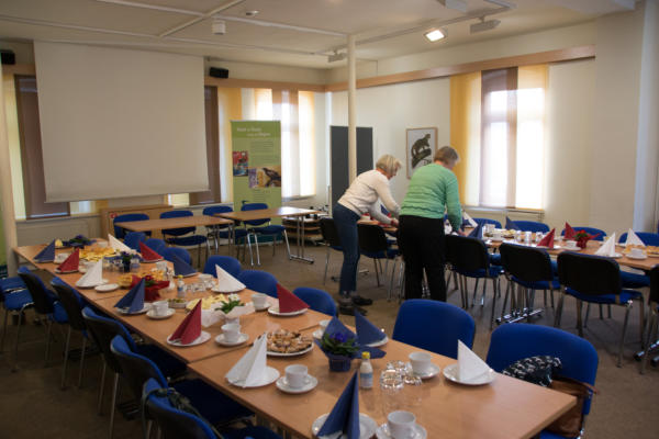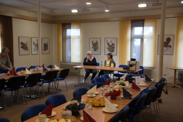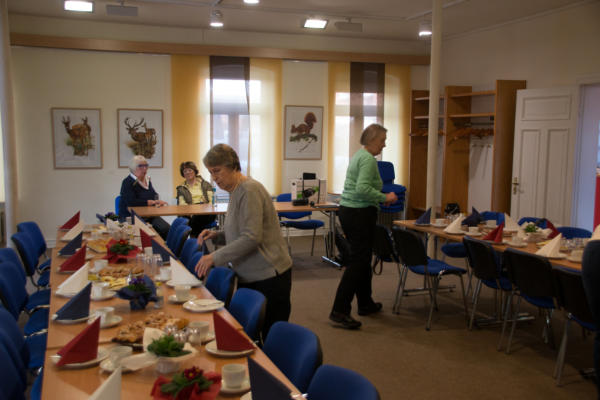 Vortrag Glockentöne am 18.01.2024Am 18.01.2024 erlebten 22 Senioren den Vortrag Glockentöne vom Glockensachverständigen der Nordkirche Volker Scheibe. Unter der Leitung von Henni Voß hatten Hilde Beutin, Berthild Ingwersen und Waltraud Wäller die Tische im Vortragsraum des Naturkundemuse-ums in Niebüll wunderschön hergerichtet. Servietten in den Landesfarben, ebenso Blümchen als Tischschmuck. Der Kuchen und die Schnittchen, organisiert von Henni Voß waren echt gut. Der Vortrag selbst dauerte ca. 90 Minuten und war so interessant, dass alle Teilnehmer aufmerksam zugehört und zugeschaut haben, bis Volker Scheibe zum Ende kam. Der Applasus war ihm anschließend sicher. Für den Vortrag wurde kein Honorar verlangt, sondern es wurde um eine Spende für die Orgelsanierung in der Fahretofter Kirche gebeten. Diesem Wunsch ist der Ortsverband gerne nachgekommen. Vielen Dank an Volker Scheibe!Da der Vortrag so fanzinierend war, hat der Autor dieser Zeilen vergessen, ausreichend Fotos von dieser Veranstaltung zu schiessen. Darum müssen die Leser nun mit den Fotos von dem Vortragsraum im Naturkundemuseum vorlieb nehmen. Allerdings wurden noch Fotos vom fleißigen Orga-Team aufgenommen, die im Anschluss dieses Beitrages zu sehen sind.Nachstehend einige Impressionen von dieser Veranstaltung der Senioren Union Niebüll und Umgebung