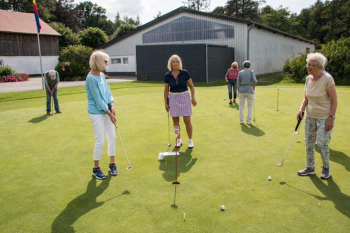 vor, die uns hervorragend betreute und anleitete, die ersten Bälle zu putten.