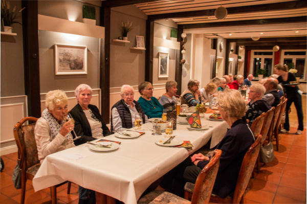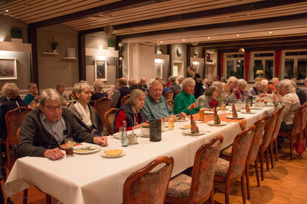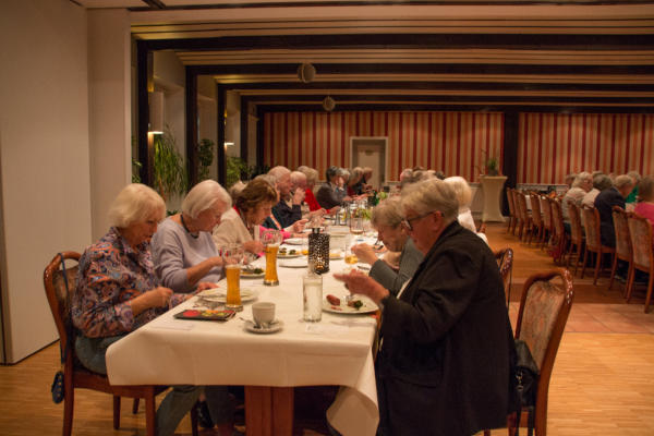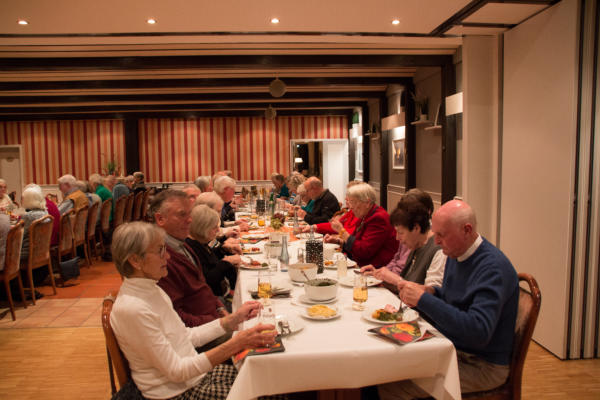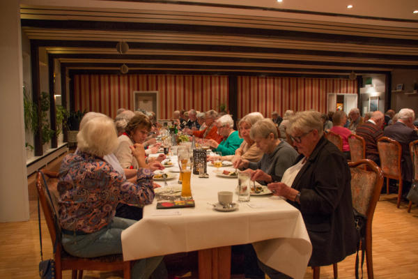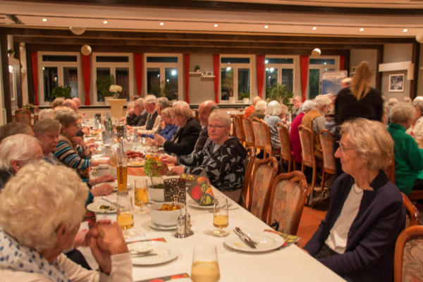 Grünkohlessen am 13.11.2024Das diesjährige traditionelle Grünkohlessen der Senioren Union Niebüll u.U fand mal wieder im Friesenhof in Niebüll statt. Fast 90 Teilnehmer hatten sich angemeldet und schon früh war der Saal gut gefüllt. Als Gäste hatten sich auch Renate und Jürgen Feddersen angemeldet, so dass auch der Kreisvorstand der Senioren Union anwesend war. Nach der Begrüßung durch den Vorsitzenden Albrecht Droste, der auch kurz die unruhigen Zeiten in der politischen Welt in Deutschland und den USA mit den Krisenherden in der Ukraine und in Israel ansprach, bat er Jürgen Feddersen, ein kurzes Grußwort an die Teilnehmer zu richten. Diesem Wunsch kam er gerne nach und überbrachte die Grüße des Kreisverbandes. Anschließend konnten an den Tischen weitere Gespräche geführt werden, bis es dann gegen 18:00 Uhr an das leckere Grünkohlessen ging. Nun wurde es etwas ruhiger im Saal, weil sich alle auf das sehr schmackhafte Essen konzentrierten.Im Anschluss daran wurde noch ein Bildervortrag gezeigt über unsere Aktivitäten in den Coronajahren 2020 bis Mitte 2022.Leider war die unterlegte Musik nicht laut genug einzustellen, sie war fast nicht zu hören. Das soll aber repariert und noch einmal nachgeholt werden. Der Bildervortrag mit den Texten wurden aber aufmerksam aufgenommen.Ein paar Fotos von diesem sehr unterhaltsamen Abend zum Abschluss.