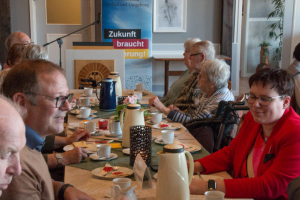 wurde zum gemeinsamen Kaffetrinken mit Kuchen, Käse- oder
