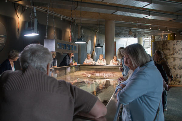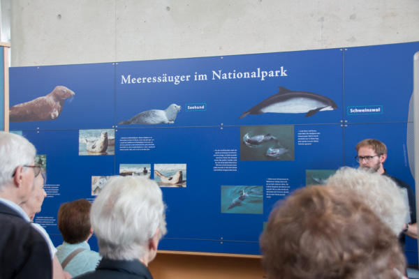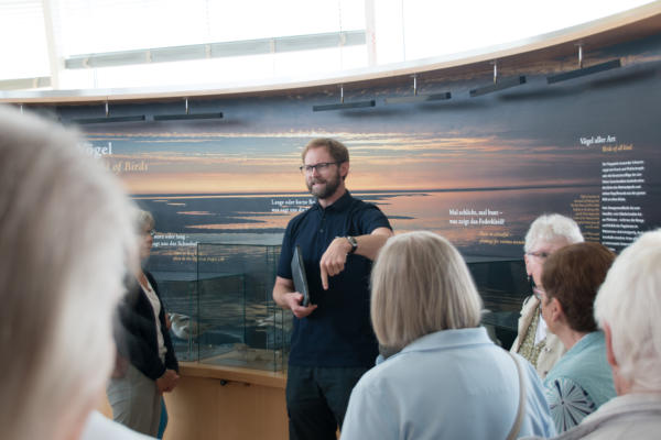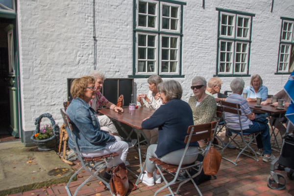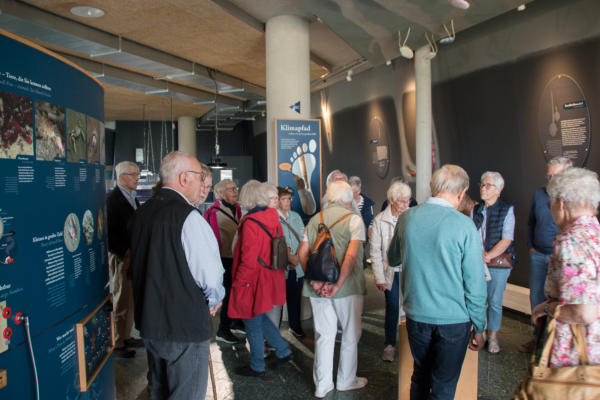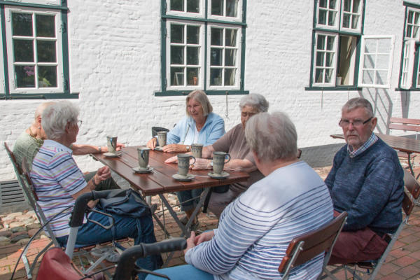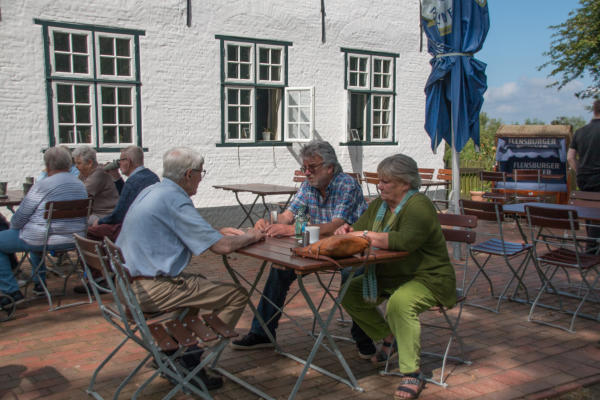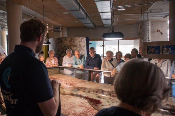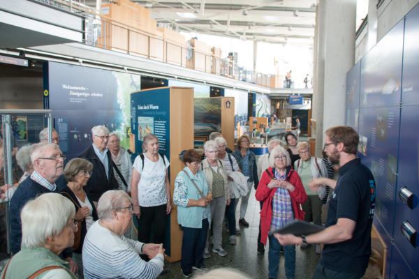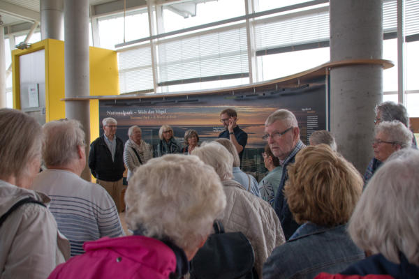 Tagesfahrt zum Multimar Wattforum undRoter Haubarg auf Eiderstedt am 18.07.2024Um 09:00 Uhr machten sich 28 Teilnehmer auf die Tagesfahrt zum Multimar Wattforum nach Tönning auf den Weg. Los ging die Fahrt bei bestem Sommerwetter vom ZOB Niebüll mit einem Reisebus vom Busunternehmen King (im Auftrag von Thors Reisen). Durch die Baustelle der B5 bei Husum fuhren wir über Friedrichstadt und Lunden nach Tönning und waren pünktlich gegen 10:30 Uhr am Multimar Wattforum. Dort erwartete uns der Führer Dr. Müller mit einer Einführung in diese umfangreiche Sammlung und Ausstellung. Es war schon beeindruckend, was uns für besondere Details der Flora und Fauna des Wattenmeeres zur Kenntnis gebracht wurden. Die rund eineinhalb Stunden Zeit gingen sehr schnell herum. Zum Abschluss konnten wir noch das große Aquarium anschauen und die darin schwimmenden Fischarten besichtigen. Anschließend ging es dann zum Mittagstisch in den Gastro-Raum der Anlage, wo uns ein schmackhaftes Mittagessen gereicht wurde. Pünktlich um 13:00 Uhr ging es dann ins Außengelände zum neu errichteten Ottergehege, um dort die heutige Fütterung mitzuerleben.Die Otter sind sehr scheu, aber zur immer zeitgleichen Fütterung kommen sie dann doch hervor und zeigen sich den Zuschauern. Es war eine insgesamt gelungene Führung und Besichtigung des Multimar Wattforums. Die Zeit bis zur Abfahrt des Busses um 14:15 Uhr ging dann sehr schnell herum.Weiter ging die Fahrt nun zum „Roten Haubarg“ auf Eiderstedt. Dort erwartete uns ein Kaffeegedeck mit einem leckeren Blechkuchen mit Sahne satt. Das dort vor kurzem eingerichtete Hausmuseum konnte anschließend besichtigt werden. Gegen 16:15 Uhr fuhren wir dann wieder zurück nach Niebüll. Ein insgesamt sehr interessanter Tagesausflug ging damit zu Ende.Vielen Dank an den Ideengeber und Organisator Hans-Jörg Bockwoldt.Abschließend einige Fotos dieses Ausflugs