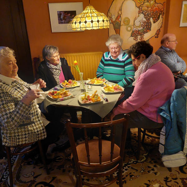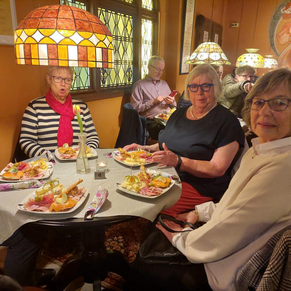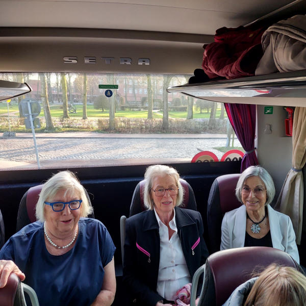 Niederdeutsche Bühne Flensburg am 08.03.2024Nach 10-jähriger Pause haben wir am 8.3.2024 wieder einmal die Niederdeutsche Bühne in Flensburg besucht. Das letzte Mal (2013) erlebten wir das 2-Mann-Stück „Sonny Boys“ – einige unserer Mitglieder, die seinerzeit dabei waren, erinnern sich vielleicht daran.Nach pünktlicher Abfahrt in Niebüll und Begrüßung durch die stellvertr. Vorsitzende Christel Ehlers gab es während der Fahrt nach Flensburg eine kleine Aufmerksamkeit für die Damen:Zum „Weltfrauentag“ überreichte der Unterzeichner Klaus Ehlers nach ausführlicher Würdigung der Leistungen unserer Damen jeder Dame eine „Mon-cherie-Praline, was für allgemeine Heiterkeit sorgte.Nach Ankunft in Flensburg gab es im Theaterrestaurant vor Beginn der Vorstellung den sogen. „Theaterteller“ – sehr lecker und reichlich.Danach ging es in den Theatersaal zur Aufführung. Diesmal ging es um ein anderes Thema, nämlich um die sogenannten Wechseljahre. Kurz zum Inhalt: 4 Damen in den besten Jahren treffen auf dem Flughafen aufeinander und haben nur 2 Dinge gemeinsam: Ihr Flieger verspätet sich aus unbekannten Gründen, und sie befinden sich in den Wechseljahren oder kurz davor. Da ist die gehetzte Karrierefrau, die naive Hausfrau, die vornehme Dame und die in die Jahre gekommene Dauerverlobte. Kein Wechseljahrthema ist tabu, egal ob Hitzewallungen, Panikattacken oder Schlaflosigkeit. Mit legendären Songs und Evergreens trifft das „Hormonical“ je nach Stimmung den richtigen Ton: unverblümt, zornig, schnippisch, sentimental und manmal frivol. Beste Unterhaltung war damit garantiert. Leider durften wir während der Aufführung aus GEMA-Gründen (?) keine Fotoaufnahmen machen. Daher können wir nur eine kleine Auswahl zeigen.Fazit: es war eine gelungene Veranstaltung, die wir im nächsten Jahr mit dann neuem Programm wiederholen werden.Klaus EhlersNachstehend einige Impressionen von dieser Veranstaltung der Senioren Union Niebüll und Umgebung. Während der Vorstellung waren keine Fotos erlaubt.